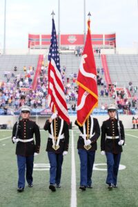 Teams:A Marine Corps JROTC unit’s Color Guard is often a very active representative of the unit at pubic events. Whether it’s presenting the American Flag at high school basketball or football games, National Honor Society events, or school board meetings, the MCJROTC Color Guard stands ready to serve its host school. In the community, MCJROTC Color Guards perform at parades, ceremonies, and sporting events. All MCJROTC cadets are encouraged to compete and train for color guard, as they represent the most focused and dedicated cadets.