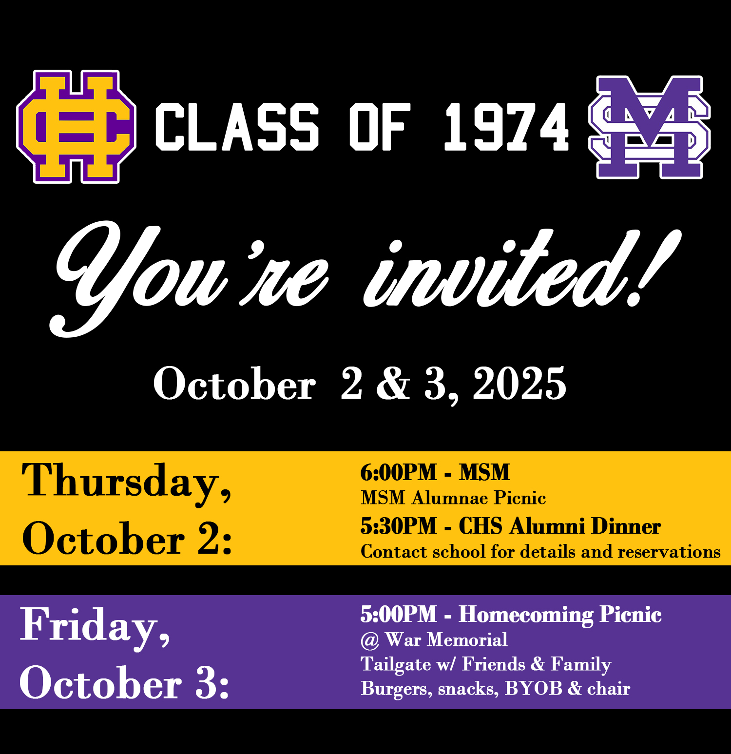 October 3, 2025: CHS Homecoming Tailgate Picnic and Game